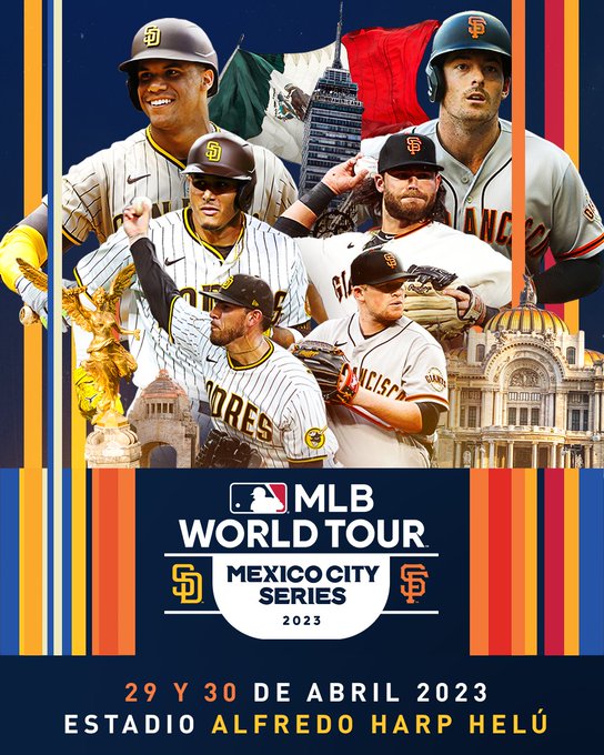 1.- No se nos olvide: Padres de San Diego y Gigantes de San Francisco se encontrarán en una serie de dos juegos en el Estadio Alfredo Harp Helú en la ciudad de México el 29-30 de abril del 2023.,